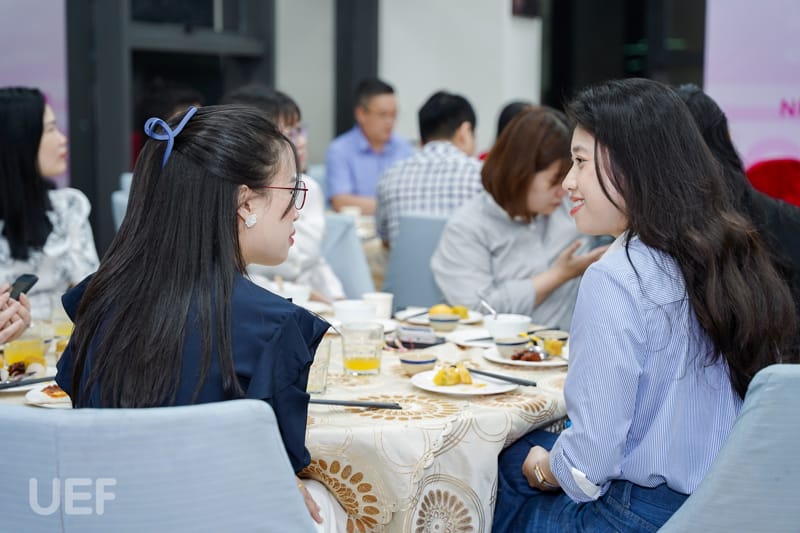 Đại diện UEF tham dự có: ông Đỗ Quốc Anh - Phó Chủ tịch Hội đồng trường, TS. Nhan Cẩm Trí - Phó Hiệu trưởng Nhà trường, PGS.TS. Hoàng Thị Hồng Hà - Trưởng khoa Quan hệ công chúng và Truyền thông, TS. Đặng Anh Lực - Phó Trưởng khoa Quan hệ công chúng và Truyền thông, ThS. Nguyễn Thị Bích Vân - Phó Trưởng khoa Quan hệ công chúng và Truyền thông cùng các giảng viên của khoa.