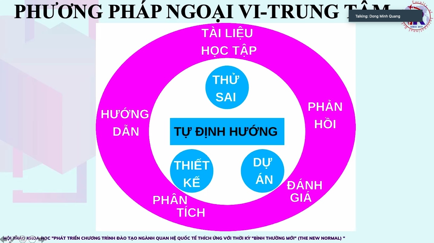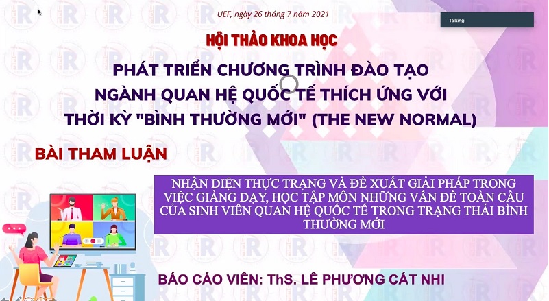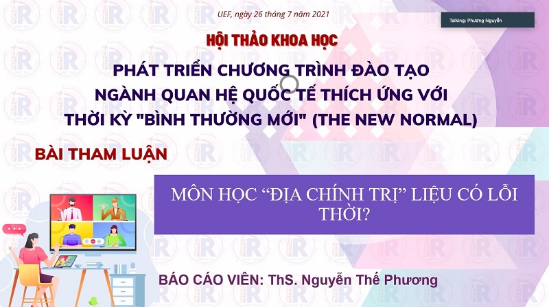 Nhằm trang bị cho sinh viên khả năng thích ứng với những thay đổi, có kỹ năng quản lý rủi ro, ứng phó hiệu quả với mọi sự bất bình đẳng, kỹ năng giải quyết những vấn đề mang tính tích hợp của môi trường làm việc nhóm đa dạng, sáng 26/7, khoa Quan hệ quốc tế đã tổ chức Hội thảo khoa học với chủ đề “Phát triển chương trình đào tạo ngành Quan hệ quốc tế thích ứng với Thời kỳ Bình thường mới (The New Normal)”.