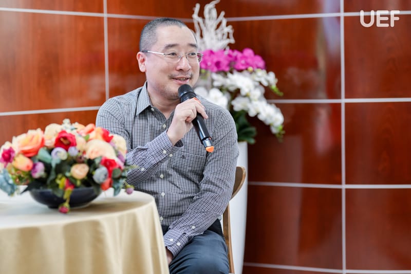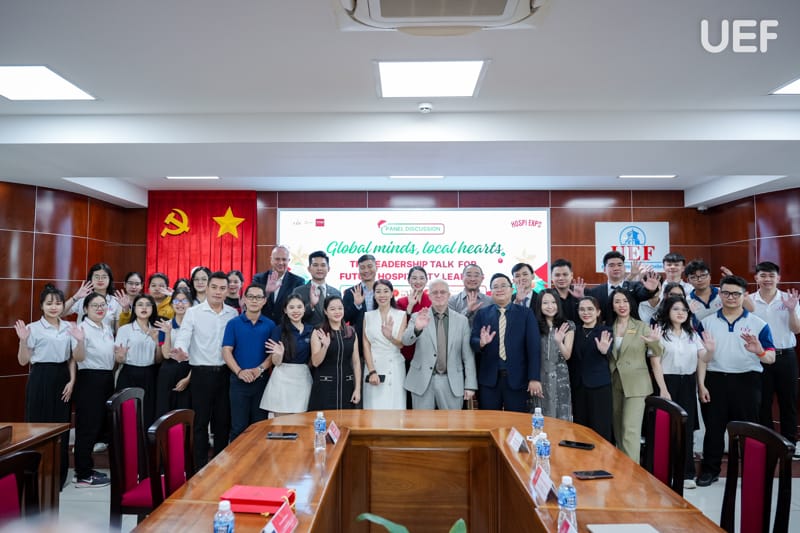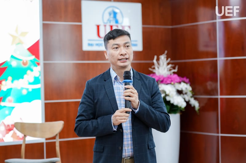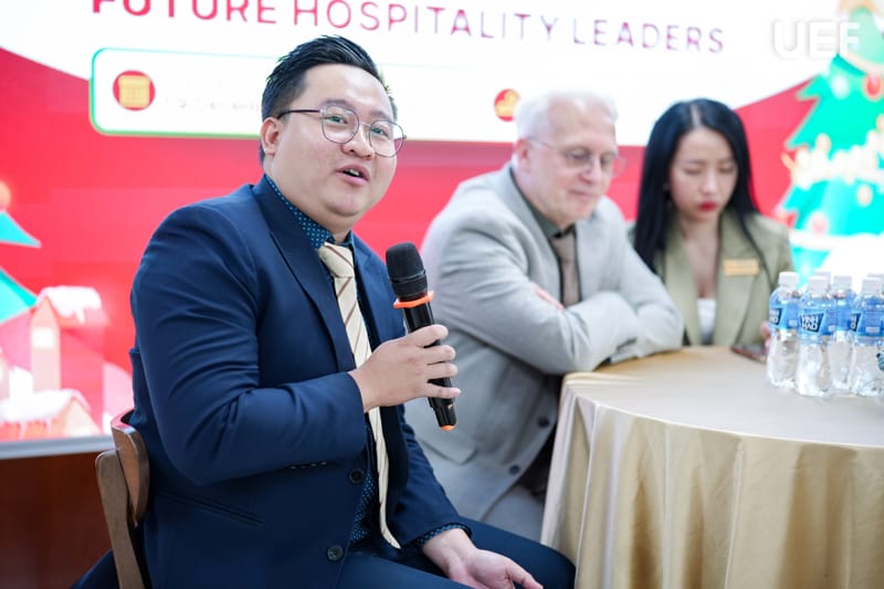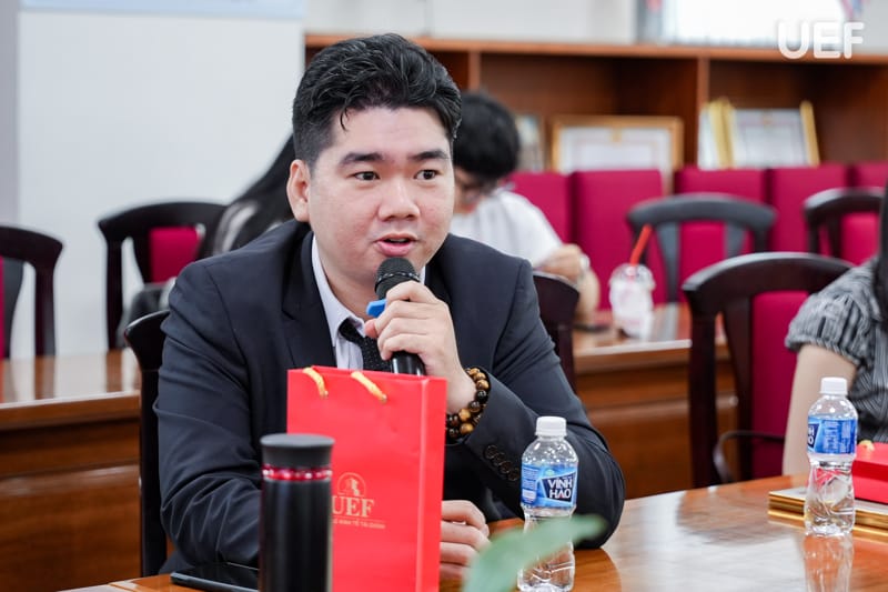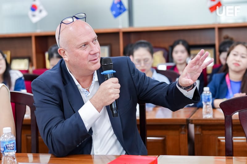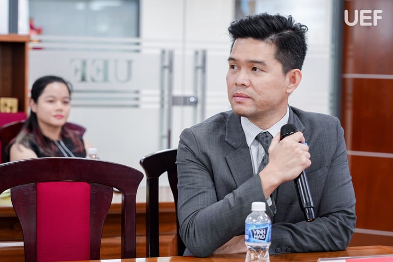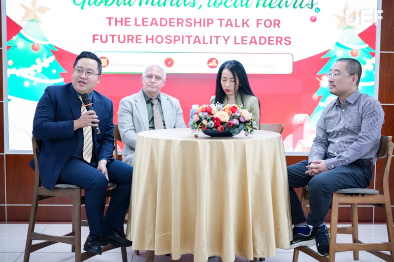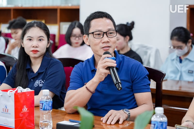 Đại diện UEF, TS. Ngô Minh Hải - Phó Hiệu trưởng chia sẻ rằng nhóm ngành dịch vụ đang phát triển mạnh mẽ và đòi hỏi nguồn nhân lực có tư duy cởi mở, linh hoạt cùng khả năng thích ứng cao. Thầy nhấn mạnh UEF luôn tạo điều kiện để sinh viên hướng đến hình mẫu công dân toàn cầu và sẵn sàng hội nhập quốc tế, đồng thời hy vọng workshop sẽ mở ra những trao đổi ý nghĩa, tạo tiền đề để các bạn định hình phong cách lãnh đạo phù hợp trong tương lai.