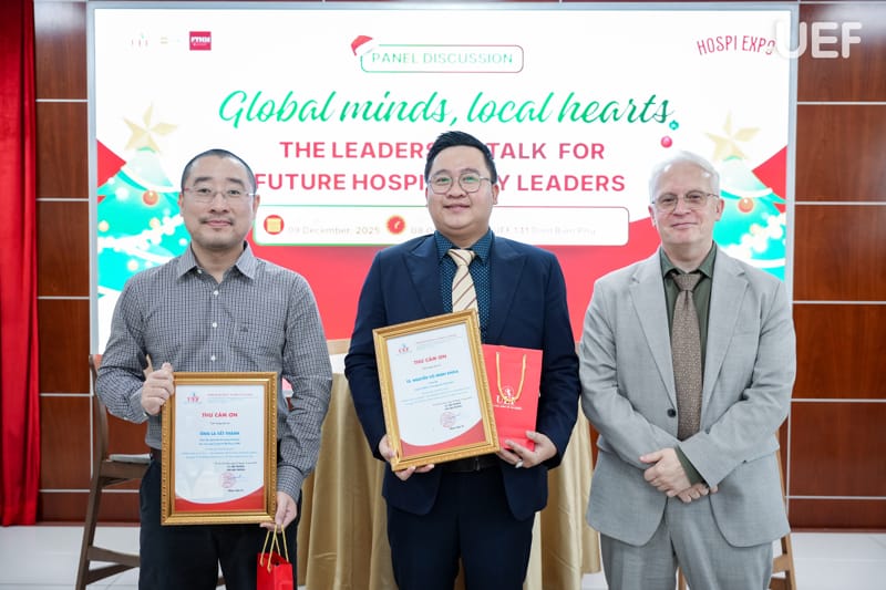 Sáng ngày 9/12, Khoa Quản trị du lịch - Khách sạn tổ chức workshop “Global Minds, Local Hearts - The Leadership Talk for Future Hospitality Leaders” với sự chia sẻ của các diễn giả giàu kinh nghiệm nhằm mang đến cho sinh viên góc nhìn thực tiễn về vai trò lãnh đạo trong nhóm ngành dịch vụ.