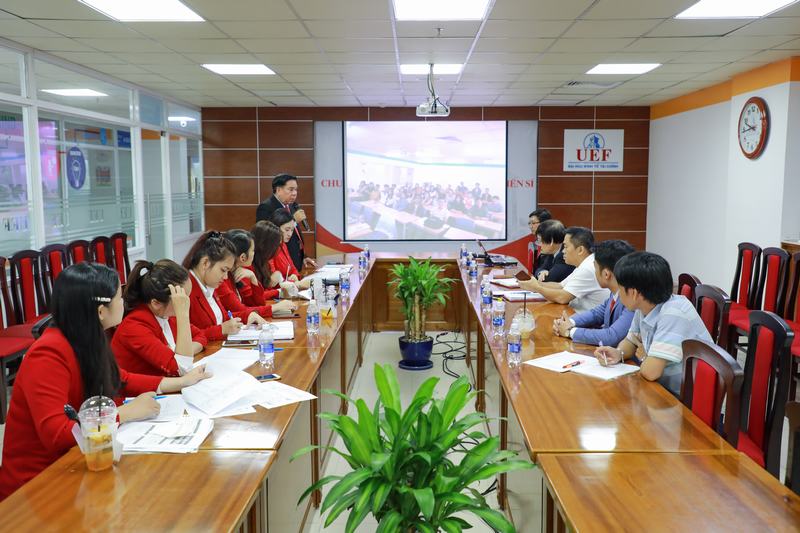 Đại diện Lãnh đạo UEF, Ban chủ nhiệm và giảng viên khoa Quản trị du lịch - Khách sạn tham dự cuộc họp