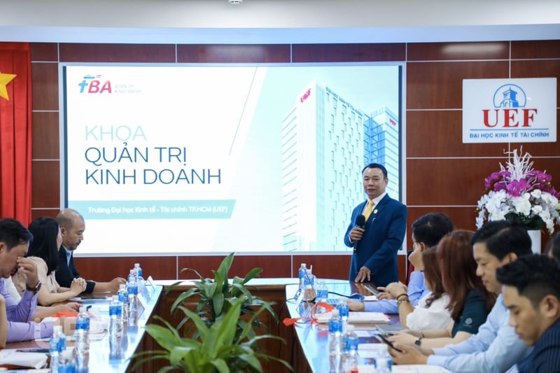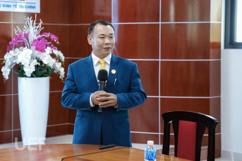 Tiếp đó, ThS. Huỳnh Quốc Phong đã chia sẻ về chương trình hợp tác doanh nghiệp của UEF. Buổi gặp mặt này giữa hai bên được tổ chức với mong muốn phát triển mối quan hệ với doanh nghiệp qua các hoạt động thực tế và gắn kết hơn với nhiều "cộng sự" mới. Trong khuôn khổ hợp tác, doanh nghiệp sẽ hỗ trợ UEF trong các hoạt động học thuật chuyên môn, đóng góp xây dựng chương trình đào tạo bám sát thực tiễn, tiếp nhận sinh viên đến tham quan, thực tập,... ThS. Huỳnh Quốc Phong cho biết, những năm gần đây, UEF đã tổ chức thành công hoạt động "phỏng vấn thử, kết quả thật". Đây là cơ hội để sinh viên tiếp cận doanh nghiệp, lựa chọn công việc phù hợp với bản thân. Ngược lại, các doanh nghiệp cũng tìm kiếm được nhân tài phục vụ cho sự phát triển của tổ chức.