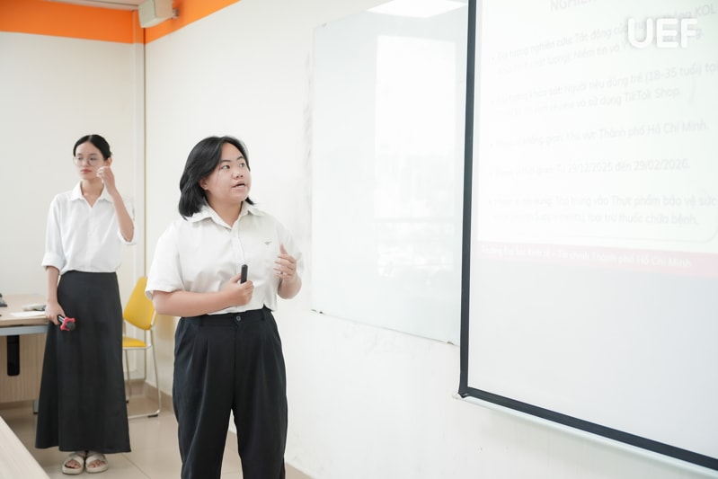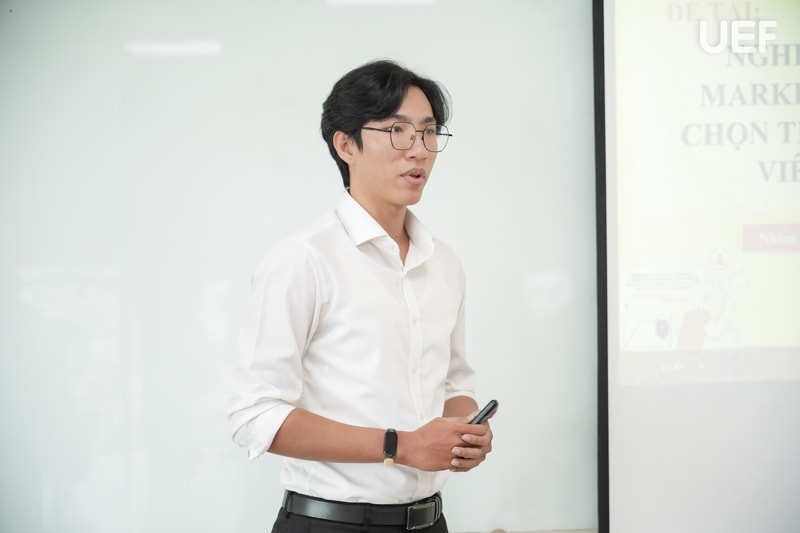 Ngày 21/4, Khoa Quản trị kinh doanh UEF tổ chức buổi nghiệm thu đề tài nghiên cứu khoa học sinh viên năm học 2025 - 2026. Năm nay Khoa ghi nhận có đến 12 đề tài nghiên cứu và 10 đề tài tham gia trình bày tại buổi nghiệm thu. Đây là cột mốc đánh dấu hành trình học tập và nghiên cứu nghiêm túc của sinh viên, đồng thời thể hiện tư duy phân tích, khả năng vận dụng kiến thức chuyên ngành vào việc giải quyết các vấn đề quản trị và kinh doanh thực tiễn.