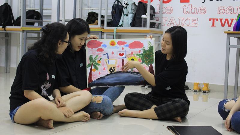 Các bạn được khuyến khích tìm hiểu các thành viên trong nhóm thông qua việc kể câu chuyện của mình bằng những nét vẽ và mảng màu đa dạng. Mỗi sắc màu, mỗi nét vẽ là đại diện cho một cảm xúc đang chờ đợi được bộc bạch. Từ đó mọi người dần xóa tan cảm giác ngại ngùng ban đầu và cùng nhau vui chơi hết mình.