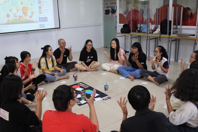 Đến với buổi tập huấn, các bạn sinh viên UEF đã tự mình trải nghiệm một số trò chơi thú vị liên quan tới vẽ tranh như “Bày tỏ cảm xúc bằng màu sắc”, “Vẽ chân dung”, “Hòn đảo vui vẻ”,... để hiểu hơn về bản thân và mọi người xung quanh cũng như trang bị những kỹ năng khi tiếp xúc với các em nhỏ.