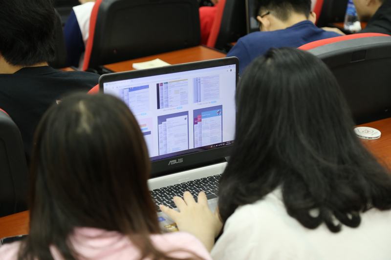 Ngay trong buổi sinh hoạt chuyên đề tăng cường kiến thức thực tế cho môn học Viết kinh thương này, các bạn đã cùng thực hành trên công cụ viết CV quen thuộc là TopCV.vn. Đại diện doanh nghiệp cũng trực tiếp góp ý, điều chỉnh cho các bạn những vấn đề chưa phù hợp. Chỉ trong thời gian ngắn, sinh viên UEF đã có trong tay một bản CV khá hoàn chỉnh có thể sử dụng trong tương lai.