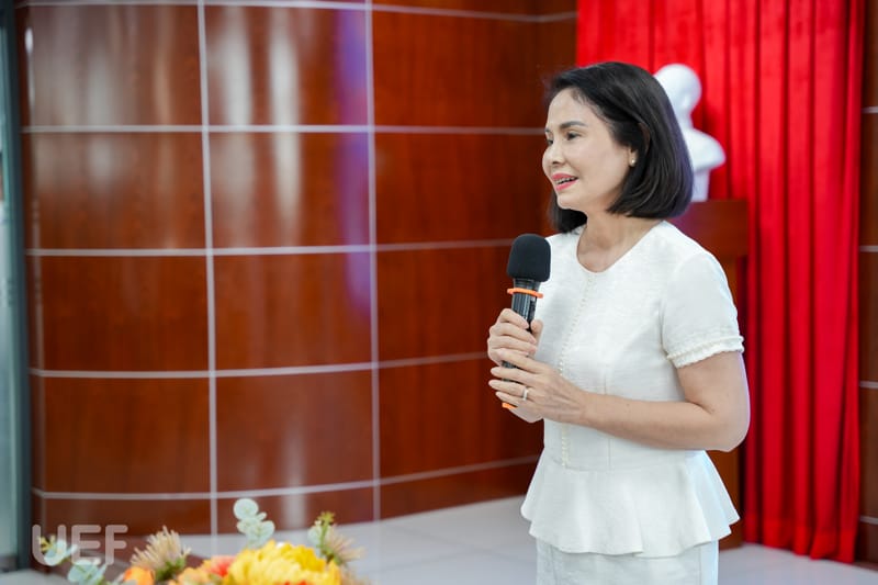Đại diện các vị mentor trong dự án, bà Hương Thảo Nguyễn - Founder, CEO CORE Leadership Academy bày tỏ: “Qua dự án này, các bạn được đồng hành với một mentor, các bạn được đặt câu hỏi, được khai phá và hiểu thêm bản thân, từ đó tìm câu trả lời xác đáng nhất. Mentor chúng tôi cũng không phải là người giỏi hơn, không phải là người xuất sắc, chúng tôi chỉ là người lắng nghe, khơi gợi, động viên để các bạn đi tìm câu trả lời cho chính mình. Sau buổi kick-off, các bạn sẽ lựa chọn mục tiêu để bứt phá, vượt qua “vỏ kén” của mình để tiếp cận với thế giới thực tiễn, trải nghiệm bằng hành động và hòa nhập vào thị trường lao động. Qua thời gian, các bạn sẽ đóng góp được giá trị cho xã hội và hy vọng rằng trong tương lai, các bạn có thể trở về UEF để trở thành một mentor. Chúc cho các mentor và mentee sẽ có hành trình thật nhiều ý nghĩa và gặt hái kết quả như ý”.
