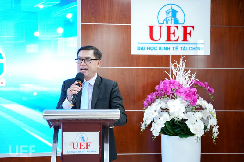 TS. Nhan Cẩm Trí - Phó Hiệu trưởng UEF phát biểu mở đầu chương trình