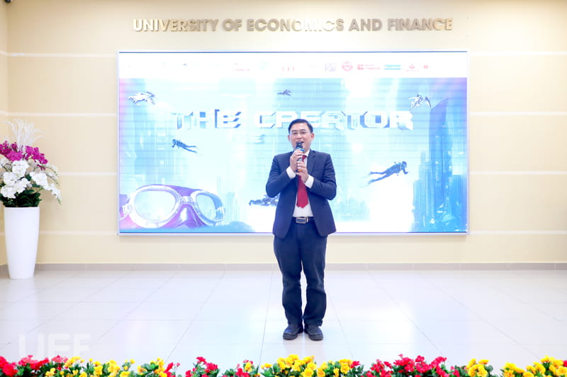 Phát biểu mở đầu, TS. Nhan Cẩm Trí - Phó Hiệu trưởng Nhà trường nhấn mạnh The Creator là cuộc thi để sinh viên thỏa sức sáng tạo, rèn luyện kỹ năng thực chiến hiệu quả. Hy vọng từ sân chơi này, các bạn sẽ tạo ra nhiều ý tưởng chất lượng và thử thách bản thân hết mình.