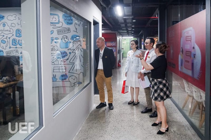 Cũng nhân chuyến đi này, lãnh đạo Nhà trường đã được tham quan hệ thống cơ sở vật chất chuyên nghiệp của MCV Group, bao gồm một số khu vực như: Phim trường, studio, kho mỹ thuật, khu vực đón khách, nghỉ ngơi, giải trí và nhiều phòng ban khác nhau. Ở mỗi vị trí, doanh nghiệp đều tận dụng tối đa không gian để thiết kế, kết hợp hài hòa giữa các yếu tố truyền thống và hiện đại nhằm tạo ra nguồn cảm hứng bất tận để các bạn trẻ phát huy năng lực sáng tạo của mình. Các thầy cô của UEF cũng theo đó mà có thể trở nên yên tâm về môi trường làm việc chất lượng của các bạn sinh viên tại đây.