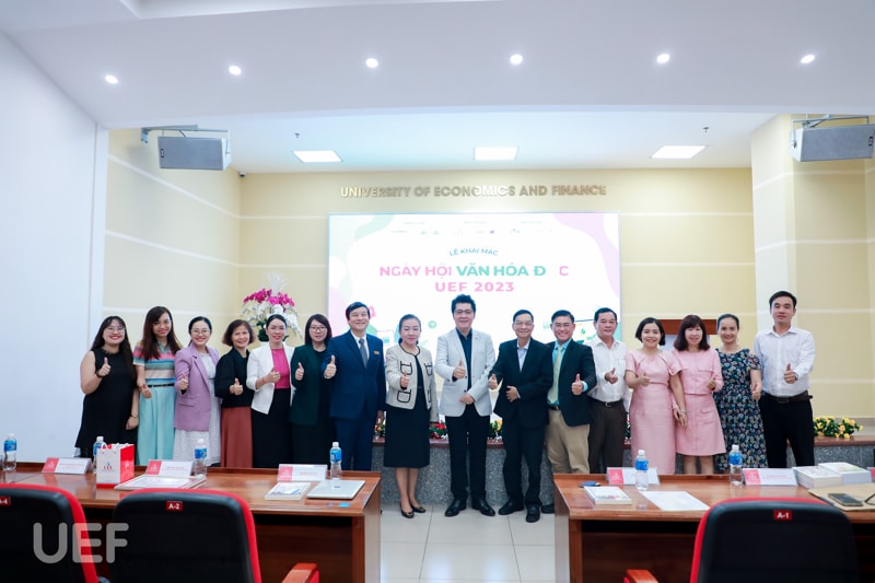 Buổi lễ khai mạc Ngày hội văn hóa đọc UEF 2023 có sự tham dự của Nhà báo Nguyễn Thị Kim Hoa – Thư ký tòa soạn, Tạp chí Doanh nhân Sài Gòn; Phóng viên Nguyễn Triệu Thanh Tâm - Tạp chí Doanh nhân Sài Gòn; Bà Trần Lâm Hoài Phương – Thư ký Hội đồng Sách Doanh nhân; Bà Lê Thị Thúy Hà – CEO TYMBook & Media.