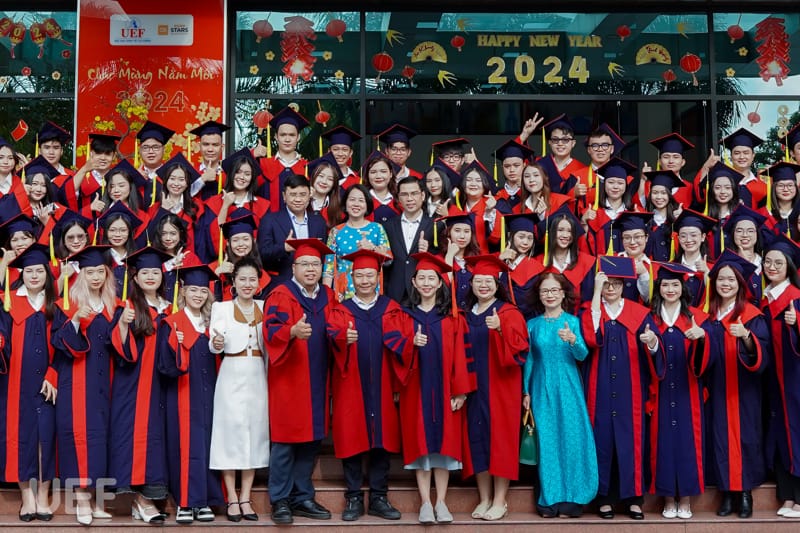 Tốt nghiệp là một khởi đầu mới trong cuộc đời của các em. Thầy cô và gia đình tự hào về các em vì các em luôn là một phần đẹp đẽ của UEF. Chúc các em trưởng thành hơn, sẵn sàng đối mặt với thế giới cùng tinh thần trách nhiệm và bản lĩnh vững vàng. Chúc mừng các em - các tân Cử nhân UEF.