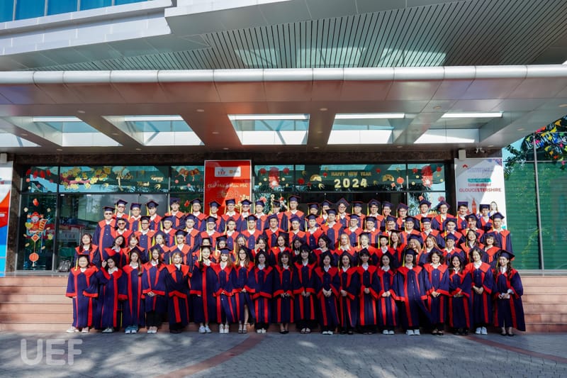 Lễ tốt nghiệp đánh dấu một cột mốc quan trọng trong cuộc đời các em, nhờ sự nỗ lực và kiên trì, các em đã đạt được thành tựu đáng quý này. Môi trường học tập chuẩn quốc tế tại UEF đã trang bị cho các em hiểu biết sâu sắc về thế giới mà chúng ta đang sống. Khi chuyển sang chương tiếp theo, hãy biết rằng kiến thức và kỹ năng các em đã có được sẽ giúp ích rất nhiều. Cô mong rằng niềm đam mê, trí tuệ và nhận thức toàn cầu sẽ dẫn dắt các em trên chặng đường chinh phục ước mơ phía trước. Hãy nắm bắt những cơ hội, tiếp tục tạo ra tác động tích cực trên thế giới và là niềm tự hào của đất nước Việt Nam. Chúc các em mọi điều tốt đẹp nhất với những nỗ lực trong tương lai của mình.