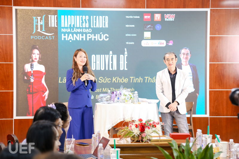 Tối ngày 23/5, chuỗi talkshow “Nhà lãnh đạo hạnh phúc” đã tiếp tục lên sóng số thứ 3 với chủ đề “Lãnh đạo và sức khỏe tinh thần". Buổi trò chuyện được dẫn dắt bởi Host Mã Thanh Danh và khách mời là ca sĩ - doanh nhân Ngọc Phạm. Sự kiện với chủ đề thú vị này thu hút đại diện nhiều doanh nghiệp và sinh viên Nhà UEF tham dự.