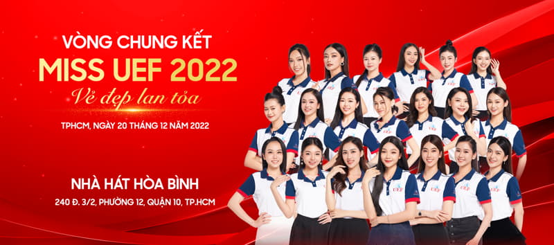 Trải qua 3 vòng thi cùng rất nhiều hoạt động đồng hành, Miss UEF 2022 với chủ đề “Vẻ đẹp lan tỏa” đi đến chặng thi cuối cùng với vòng Chung kết vào tối nay (20/12) tại Nhà hát Hòa Bình. Vương miện Miss UEF thuộc về thí sinh Lê Phan Ngọc Khánh - sinh viên Khoa Quan hệ công chúng và Truyền thông.