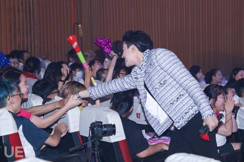 Ca sĩ Hamlet Trương xuất hiện tại chương trình với 2 tiết mục "Tuyết rơi mùa hè" và "Người yêu cũ có người yêu mới" trong những tiếng hò reo không ngừng của sinh viên Nhà UEF.