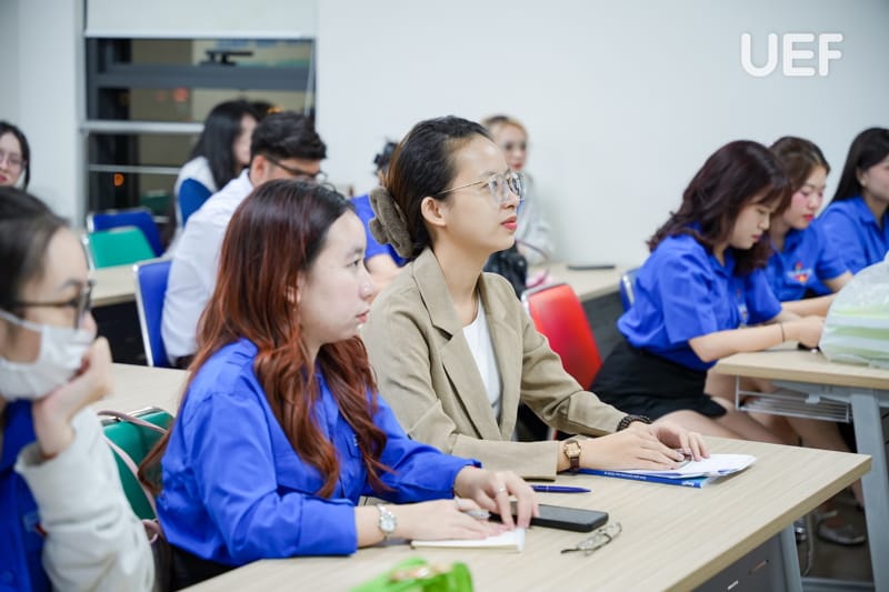 Báo cáo viên của lớp Cảm tình Đoàn là ThS. Hà Trung Thành - Giảng viên Khoa Xây dựng Đảng, Học Viện Cán bộ TP.HCM. Tại đây, sinh viên đã được tìm hiểu lịch sử ra đời của tổ chức Đoàn TNCS Hồ Chí Minh; vai trò của tổ chức Đoàn trong giai đoạn hiện nay; trách nhiệm của đoàn viên, thanh niên TP.HCM nói chung và UEF nói riêng.