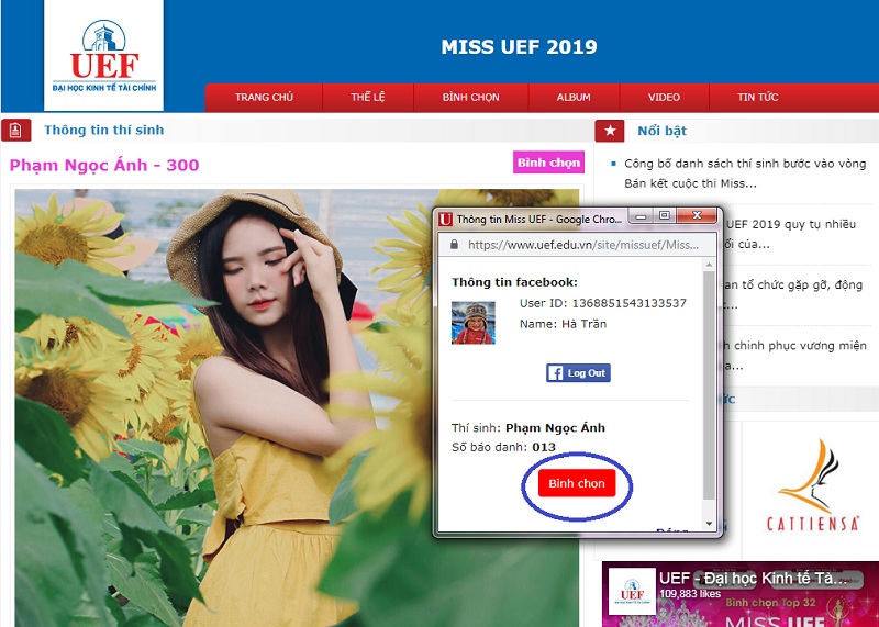 Giao diện cổng bình chọn trực tuyến Miss UEF 2019