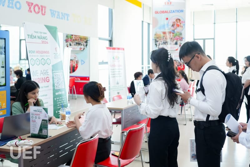 Mock-Interview và Job Fair 2024 là nơi để các bạn sinh viên Nhà UEF tìm kiếm cơ hội thực tập với nhiều ưu điểm như: đảm bảo mức độ uy tín của các doanh nghiệp, công việc đáp ứng được định hướng và chuyên ngành đào tạo, được tiếp xúc và trao đổi với nhiều công ty ngay tại "sân nhà",... Nắm bắt tốt cơ hội này, UEFers đã có sự chuẩn bị chỉn chu từ CV, trang phục, tác phong cho đến kỹ năng, kiến thức.