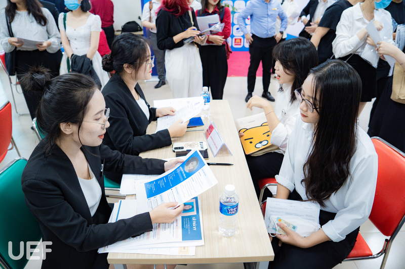 Đến với ngày hội việc làm đặc biệt này, ngoài hoạt động chính là tuyển dụng, UEFers còn được hòa mình vào trải nghiệm gian hàng của các doanh nghiệp. Bên cạnh đó, một số hoạt động như talkshow, workshop cũng được diễn ra sôi nổi với chia sẻ bổ ích đến từ các chuyên gia của doanh nghiệp - nơi sinh viên có thể lắng nghe, giao lưu và học hỏi những kỹ năng cần thiết khi chính thức thực chiến trong thị trường lao động.