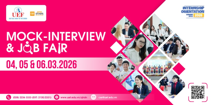 Ngày hội phỏng vấn "Mock-Interview & Job Fair tháng 3/2026" là minh chứng cho tinh thần đào tạo gắn kết với nhu cầu xã hội của UEF. Với sự chuẩn bị chu đáo về hồ sơ và tinh thần cầu thị, UEFers sẽ có thể nhân cơ hội này để tạo ấn tượng mạnh mẽ với nhà tuyển dụng, từ đó mở khóa những cánh cửa nghề nghiệp mơ ước. Sinh viên hãy nhanh tay đăng ký và chuẩn bị cho mình một bộ CV ấn tượng để sẵn sàng bứt phá trong ngày hội sắp tới.