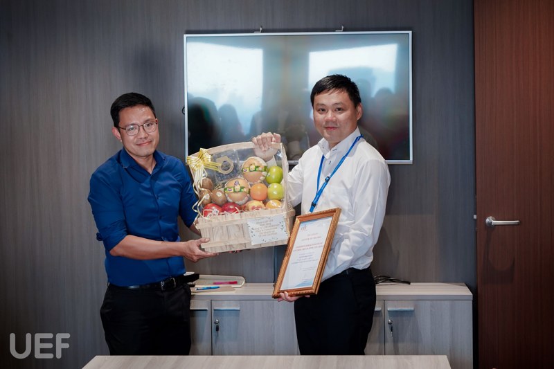 Đại diện Khoa Luật UEF gửi thư và quà cảm ơn đến đại diện công ty