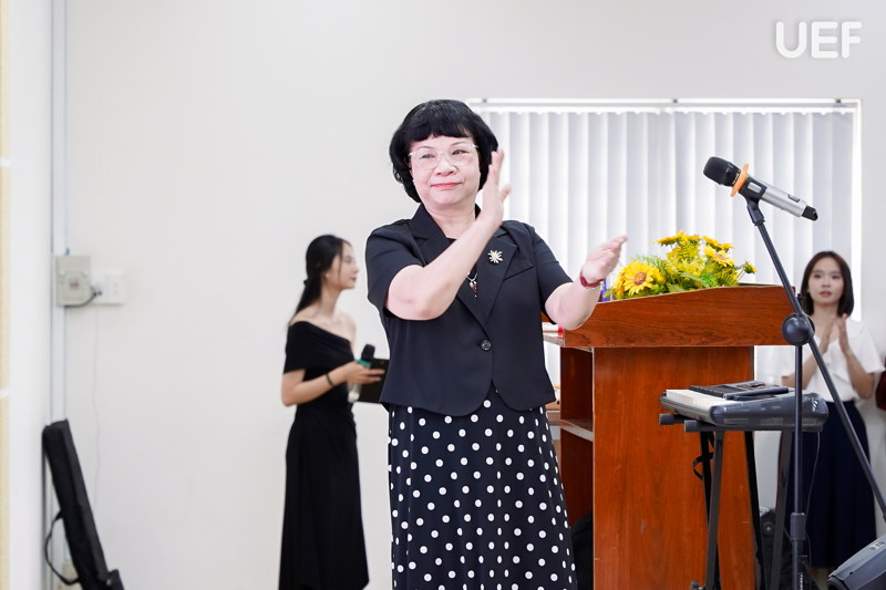 Trong phần đầu của buổi chia sẻ, cô mang đến góc nhìn thú vị về lịch sử âm nhạc trị liệu, từ phương Tây hiện đại đến những triết lý âm dương, ngũ hành phương Đông. Qua đó, sinh viên UEF được tiếp cận cách âm nhạc giúp con người cân bằng năng lượng, chữa lành cảm xúc và khơi dậy sự sáng tạo. Đặc biệt, phần thực hành với ứng dụng “Perfect Piano” giúp cả hội trường trở nên sôi động. Mỗi phím đàn là một “chạm” cảm xúc, qua đó người học cảm nhận sâu hơn tác động tích cực mà âm thanh mang lại cho tâm trí.