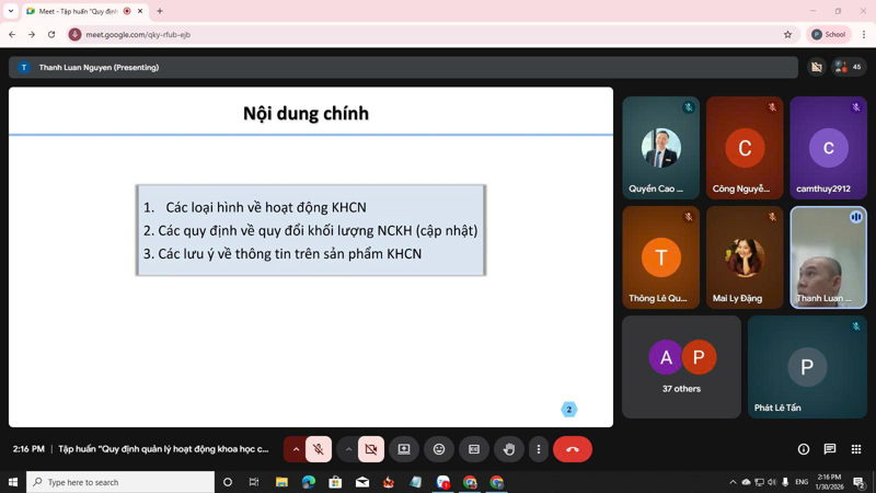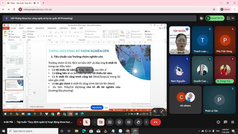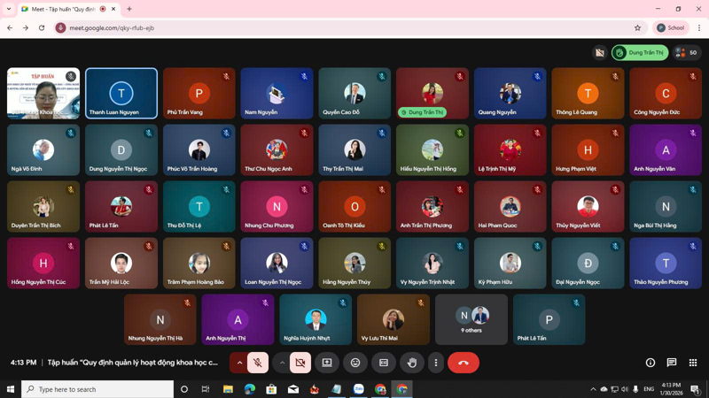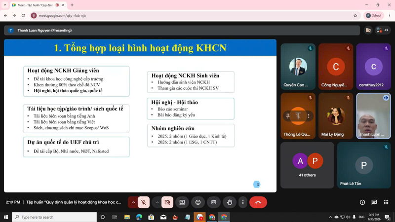 Chiều ngày 30/1 vừa qua, UEF đã tổ chức Khóa tập huấn trực tuyến chủ đề “Quy định quản lý hoạt động khoa học công nghệ và hướng dẫn kê khai công trình nghiên cứu khoa học trên phần mềm cổng thông tin quản lý nghiên cứu khoa học và tra cứu xếp hạng tạp chí” dành cho thầy cô cán bộ, giảng viên, nhân viên (CB-GV-NV) trong năm học 2025-2026.