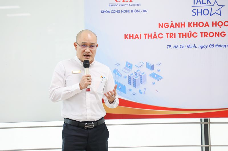 Tham gia chia sẻ trong chương trình là ThS. Lê Ngọc Thạch – đại diện công ty Hahalolo, chuyên gia có nhiều năm kinh nghiệm làm việc trong lĩnh vực khoa học dữ liệu. Talkshow còn có sự tham gia Ban chủ nhiệm khoa và đông đảo sinh viên các khóa ngành Công nghệ thông tin.