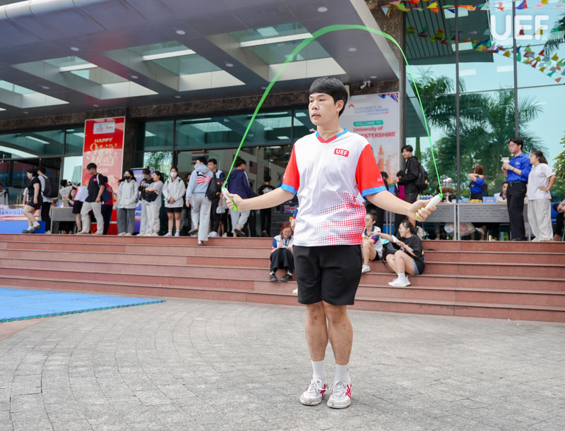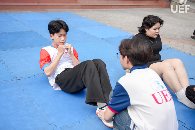 Điều tạo nên dấu ấn đặc biệt cho ngày hội lại đến từ tinh thần đồng hành của cộng đồng UEFers. Ngay khi trạm đầu tiên khởi động, tiếng hô nhịp đếm cho người đang gập bụng, tiếng vỗ tay theo từng vòng nhảy dây đã vang lên, bạn bè cổ vũ nhau từng nhịp, tiếp sức nhau từng trạm, biến cuộc sát hạch thành hành trình chinh phục chung của cả tập thể.
