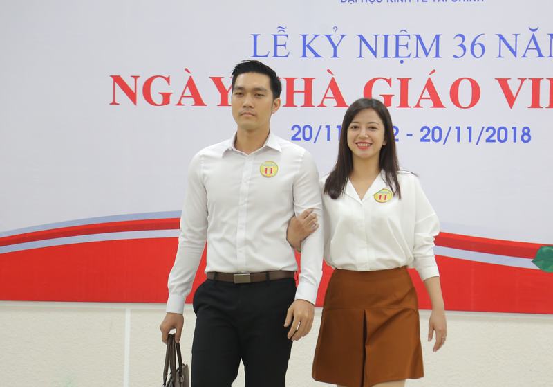 Không chỉ làm tốt vai trò trên bục giảng, các thầy cô UEF còn gây bất ngờ khi sải bước trên “sàn” catwalk. Nhiều cặp đôi để lại ấn tượng sâu sắc bởi sự đầu tư trang phục, thần thái trình diễn và sự phối hợp ăn ý trong phần giới thiệu bản thân.