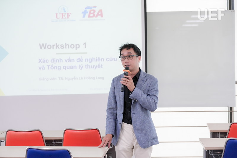 Chương trình được dẫn dắt bởi TS. Nguyễn Lê Hoàng Long - Giảng viên Khoa Quản trị kinh doanh, cùng sự đồng hành của TS. Huỳnh Nhựt Nghĩa - Phó Trưởng Khoa và các giảng viên của Khoa. Với cách truyền đạt thực tế và dễ hiểu, diễn giả đã giúp sinh viên hiểu rõ cách hình thành, lựa chọn và xác định vấn đề nghiên cứu có giá trị khoa học và mang tính ứng dụng cao.