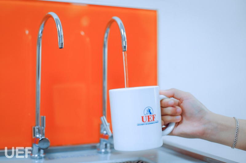 Nhằm đáp ứng nhu cầu sử dụng nước sạch, đảm bảo an toàn sức khỏe cho tập thể cán bộ - giảng viên - nhân viên (CB-GV-NV) và sinh viên Nhà trường, UEF đã đầu tư xây hệ thống máy lọc nước tinh khiết. Sau thời gian kiểm tra kỹ lưỡng về thiết bị, chất lượng, hệ thống đã được chính thức đưa vào sử dụng.