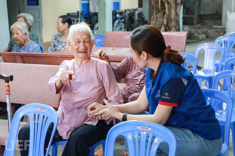 Cùng trò chuyện, động viên các cụ già neo đơn tại Mái ấm Thiên Ân