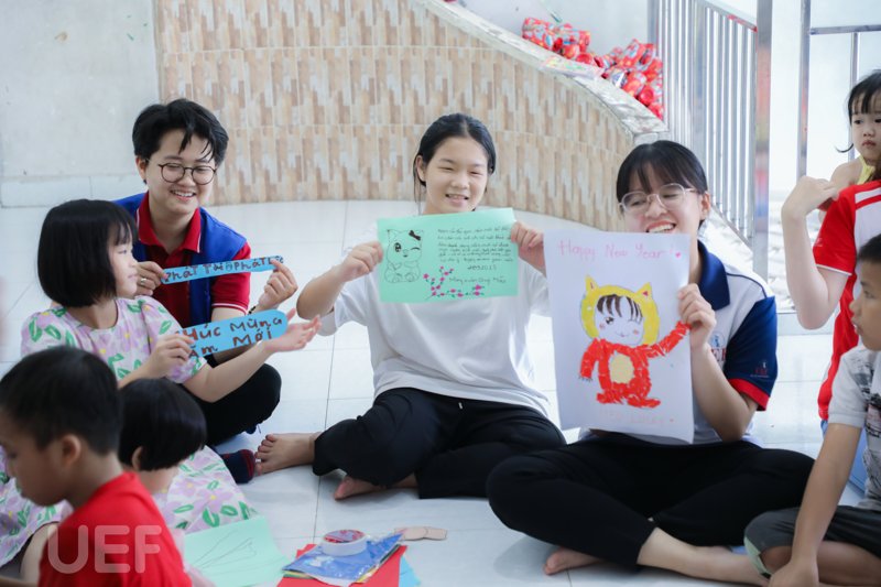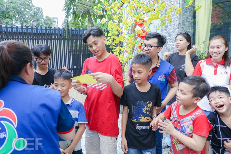 Các thầy, cô Nhà UEF đã tổ chức trò chơi giao lưu, hỗ trợ chuẩn bị bữa cơm tất niên và trao tặng những phần quà, lì xì Tết cho các em thiếu nhi. Những nụ cười tươi, sự quyến luyến của các em đã giúp các thành viên tham gia chương trình thuyện nguyện cảm nhận sâu sắc hơn ý nghĩa của chuyến đi, tạo động lực để tiếp tục thực hiện thêm nhiều chương trình nhân văn như thế!