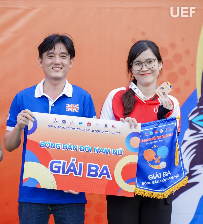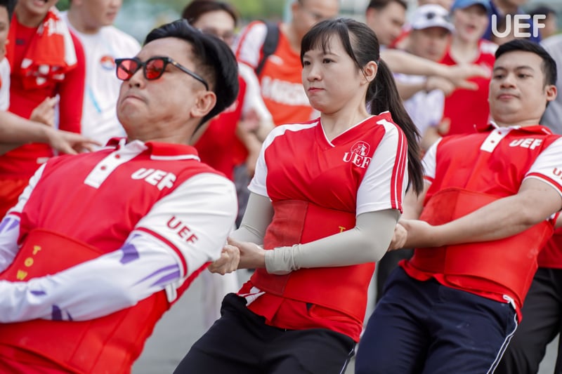 Tại bộ môn Kéo co, với sự tập luyện và chuẩn bị chuyên nghiệp, các vận động viên của UEF thắng tuyệt đối tất cả lượt trận và lập “cú đúp” giải Nhất ở hội thao năm nay. Các thầy cô thi đấu hai bộ môn còn lại cũng đã hết mình với tinh thần thể thao tích cực. Ở nội dung Bóng bàn đơn nam và đôi nam nữ, đội thi của UEF đã đạt thêm hai giải Ba.
