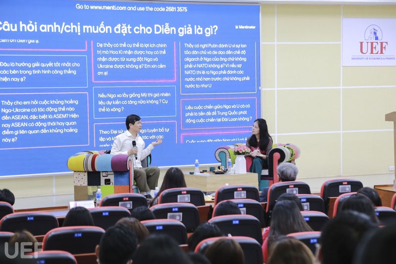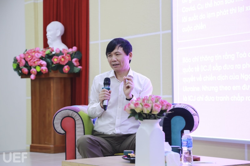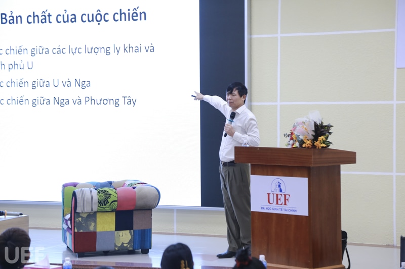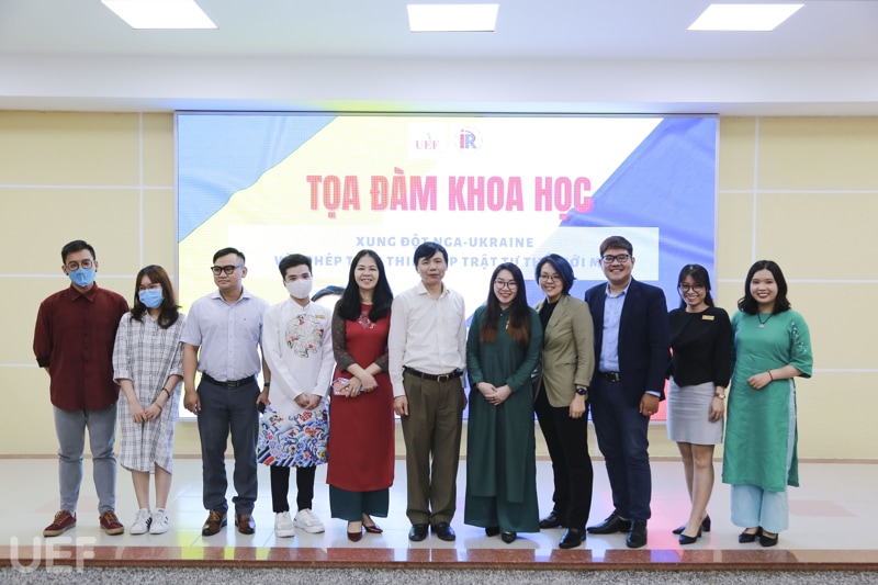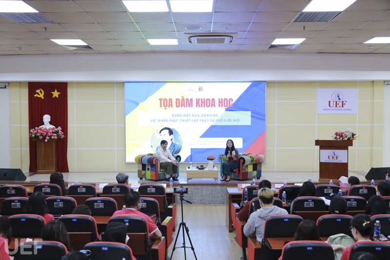 Nhằm giúp cho sinh viên đang theo đuổi lĩnh vực quan hệ quốc tế cập nhật và phân tích tình hình thời sự thế giới dưới góc nhìn thực tiễn của những người thực hiện công tác ngoại giao, khoa Quan hệ quốc tế UEF đã tổ chức tọa đàm khoa học với chủ đề “Xung đột Nga - Ukraine và phép thử thiết lập trật tự thế giới mới” thu hút đông đảo sinh viên trong và ngoài Nhà trường. Đây cũng là cơ hội để các giảng viên và sinh viên được gặp gỡ, giao lưu và học hỏi từ đại diện phái đoàn ngoại giao Việt Nam tại Liên Hợp Quốc.