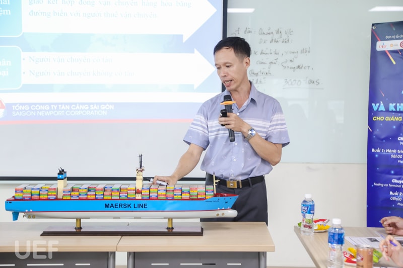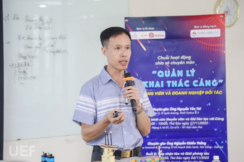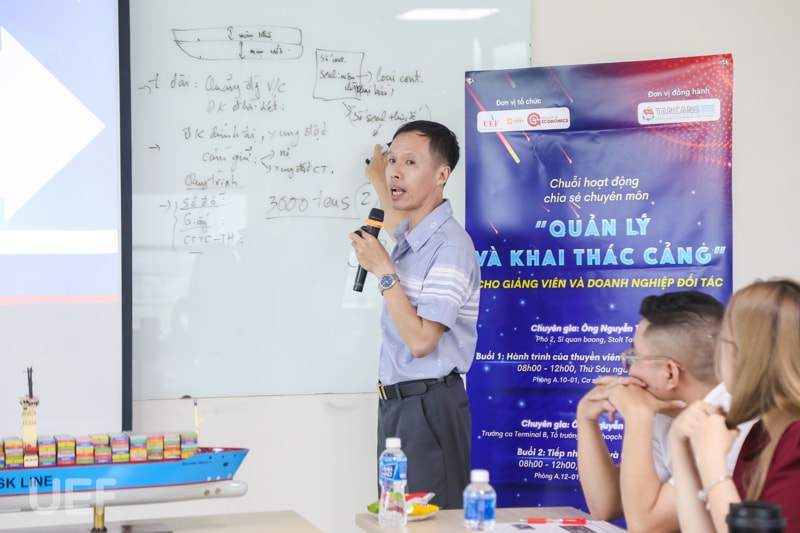 Tiếp nối thành công của buổi đầu tiên về chủ đề “Hành trình của thuyền viên và giữ liên lạc với cảng”, sáng ngày 24/11 vừa qua, Khoa Kinh tế tiếp tục tổ chức buổi trao đổi thứ hai của hoạt động chia sẻ chuyên môn “Quản lý và khai thác Cảng” với chủ đề “Tiếp nhận và giải phóng tàu". Hoạt động tạo cơ hội để các thầy, cô giảng viên UEF và doanh nghiệp đối tác trao đổi kiến thức chuyên ngành, cùng nhau nâng cao chất lượng giảng dạy cho sinh viên.