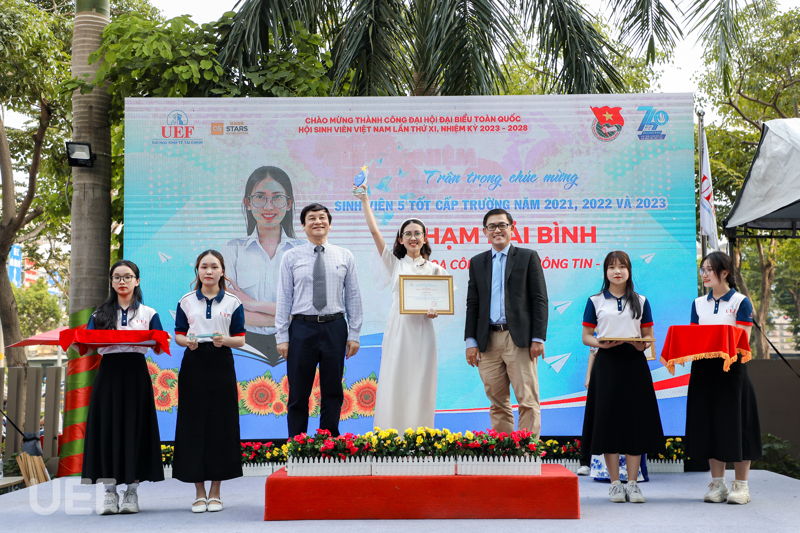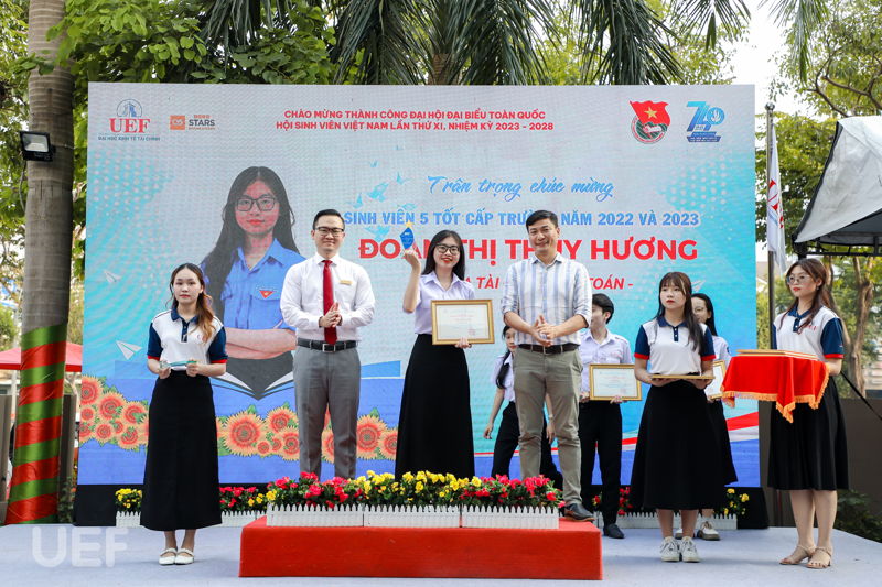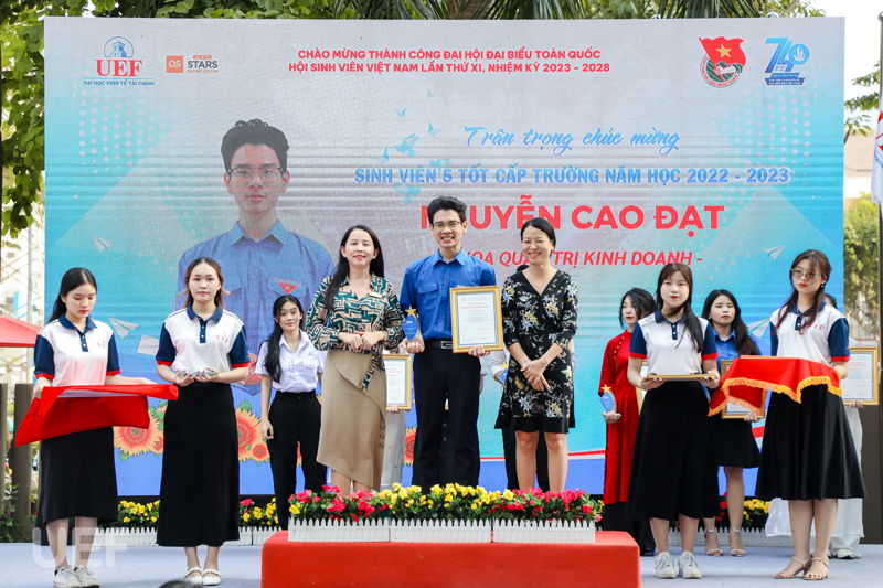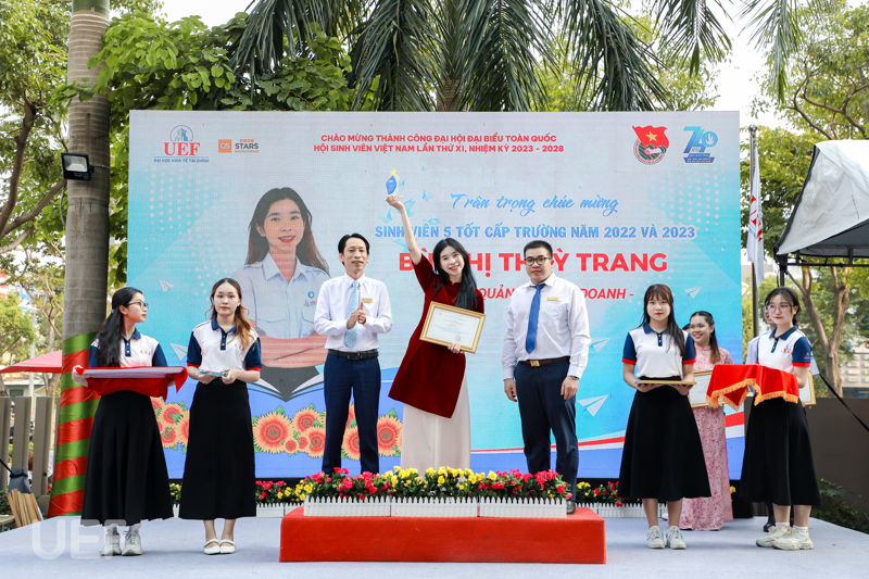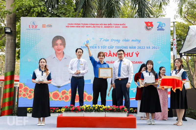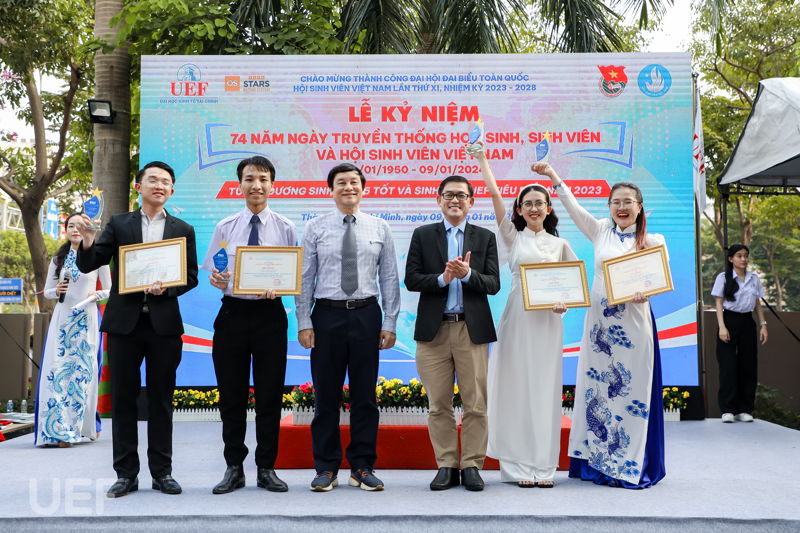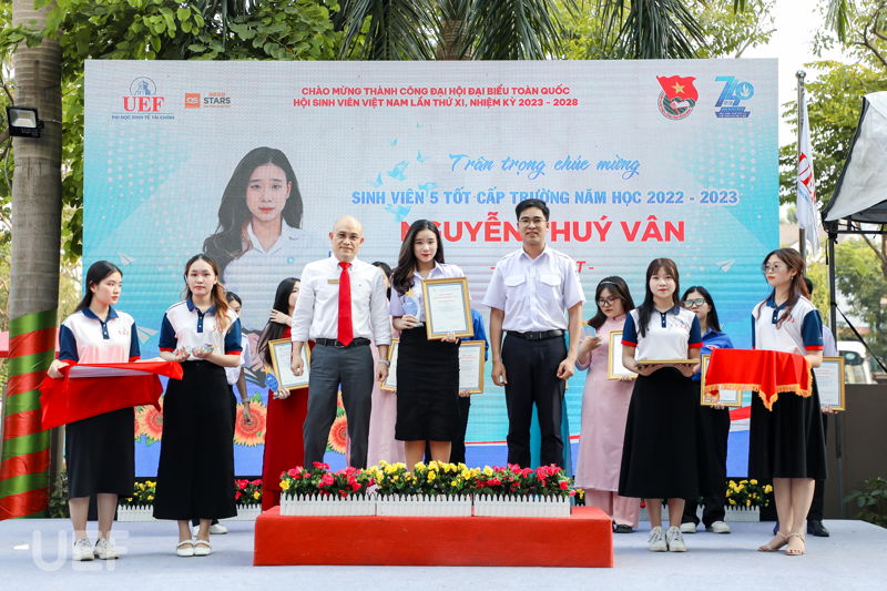Những thành tích ấy, niềm tự hào ấy đã được Nhà trường vinh danh đầy ý nghĩa tại buổi lễ kỷ niệm này. Trong đó, Nhà trường đã vinh danh và tuyên dương các bạn đạt danh hiệu Sinh viên 5 tốt năm học 2022 -2023, Sinh viên 5 tốt liên tục 2 năm và 3 năm. Trong đó càng ấn tượng hơn với loạt thành tích tại các sân chơi lớn của UEFers ở đa lĩnh vực. Tiêu biểu như: Á quân cuộc thi Sinh viên thế hệ mới 2023, Huy chương đồng Giải bóng rổ sinh viên toàn quốc, Giải Ba Liên hoan tiếng hát sinh viên toàn quốc - Khu vực phía Nam, Giải Nhì toàn đoàn Liên hoan tiếng hát sinh viên toàn thành,...