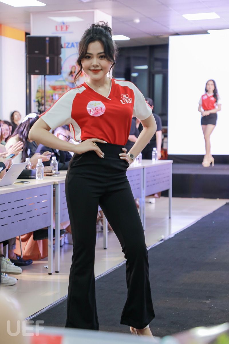 Bên cạnh sự biến hóa trong trang phục tự do, Ban giám khảo và khán giả cũng bày tỏ sự phấn khích và ấn tượng với phần thi đồng phục UEF, các bạn vừa thể hiện được tinh thần trẻ trung, năng động đúng lứa tuổi sinh viên, vừa toát ra vẻ thần thái, chuyên nghiệp trên sân khấu trong màu áo nhận diện thương hiệu UEF.