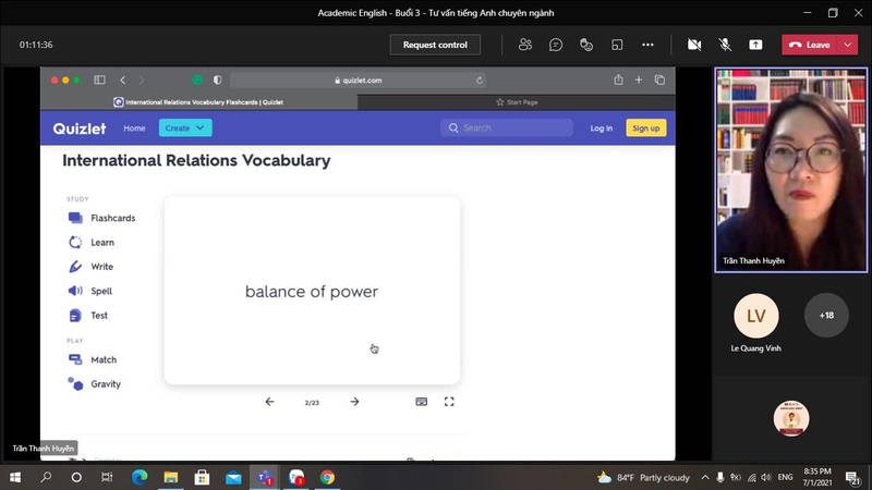 Hoạt động lần này diễn ra với những chia sẻ đến từ TS. Trần Thanh Huyền - Trưởng khoa Quan hệ quốc tế xoay quanh vấn đề về các phương pháp học tiếng Anh chuyên ngành cũng như chuẩn bị hành trang cho các bạn trước kỳ thi cuối kỳ trực tuyến sắp tới.