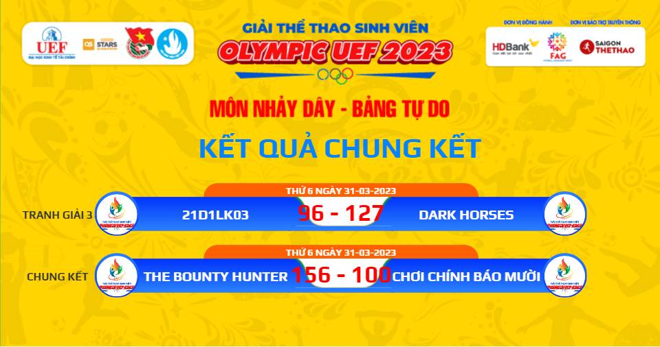 Sự gắn kết đồng đội, tinh thần quyết tâm, máu lửa là yếu tố được nhìn thấy rõ nét ở vòng Bán kết và Chung kết bộ môn Kéo co, Nhảy dây bảng tự do vào tối qua - 31/3. Như vậy, thêm 2 bộ môn tại Giải thể thao sinh viên – Olympic UEF 2023 đã tìm ra chủ nhân của những chiếc huy chương Vàng.