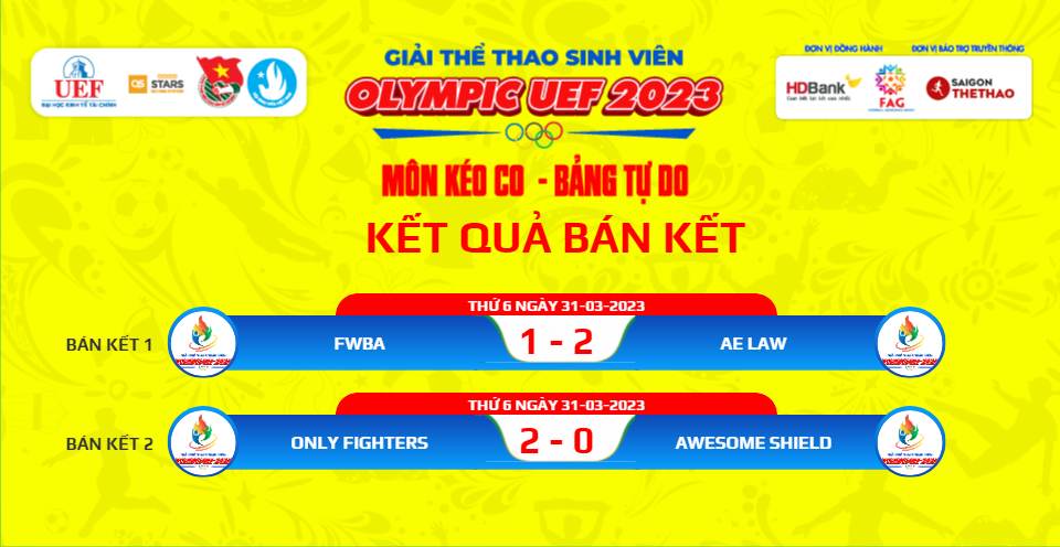 Ở bộ môn Kéo co, 2 cặp đấu vòng Bán kết gồm FwBA – AE Law, Only Fighters – Awesome Shield. Trong đó, màn tranh tài giữa đội FwBA và AE Law trải qua 3 lượt kéo. Chiếm ưu thế về sức mạnh và chiến thuật, AE Law là đội đầu tiên ghi tên vào vòng Chung kết. Với cặp đấu còn lại, đội Only Fighters hoàn toàn thắng thế khi đánh bại đối thủ sau 2 lượt kéo.
