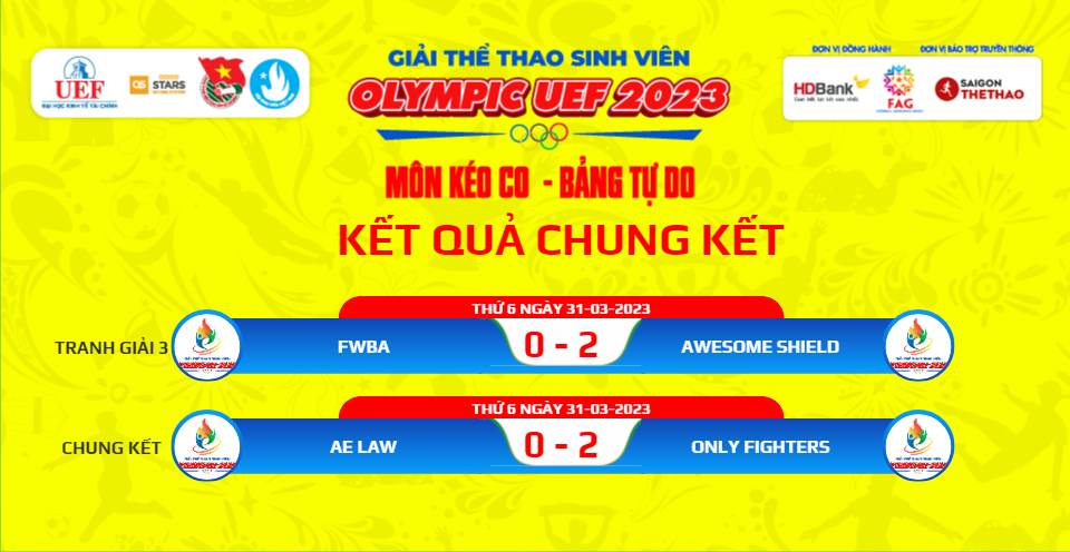 Kết quả trận đấu Chung kết và tranh hạng Ba cũng được định đoạt chỉ sau 2 lượt kéo. Awesome Shield giành giải Ba với chiến thắng trước FwBA, còn Only Fighters giữ vững phong độ và bứt phá để giành huy chương Vàng trước đối thủ AE Law.