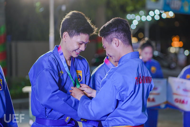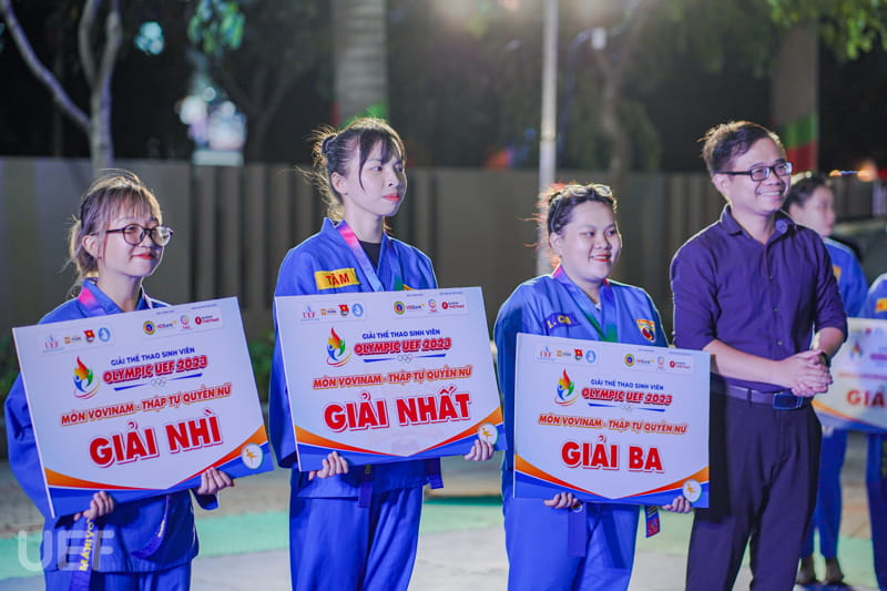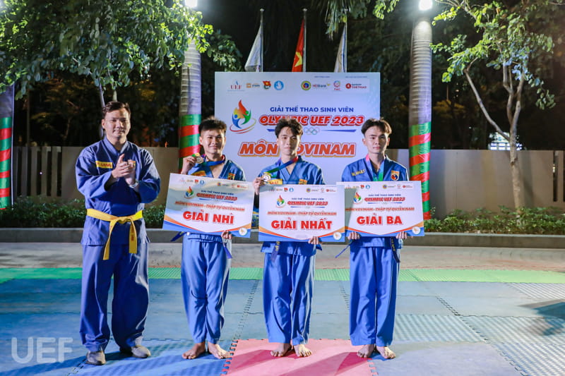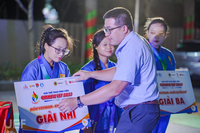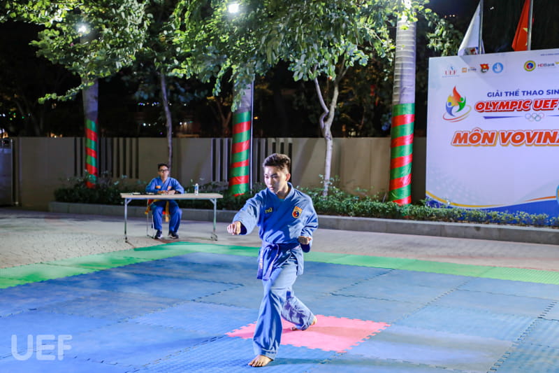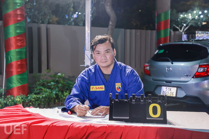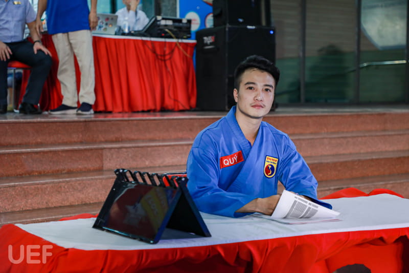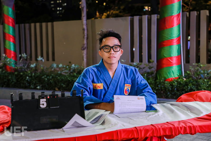 Đêm thi đấu bộ môn Vovinam 5/4 có sự theo dõi, động viên tinh thần của: ThS. Huỳnh Quốc Phong - Giám đốc Trung tâm Hợp tác doanh nghiệp UEF; ThS. Bùi Quang Đông - Trưởng phòng Công tác sinh viên UEF; ThS. Nguyễn Huỳnh Sinh - Phó Trưởng phòng Công tác sinh viên UEF.