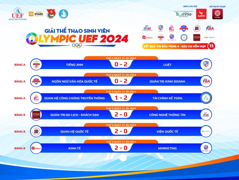Lượt trận cuối của vòng bảng bộ môn Kéo co sẽ diễn ra vào tối ngày 4/6 tới đây, UEFers cùng theo dõi và khích lệ tinh thần cho các đội tuyển nhé!