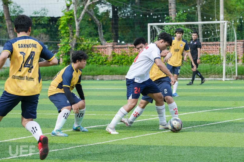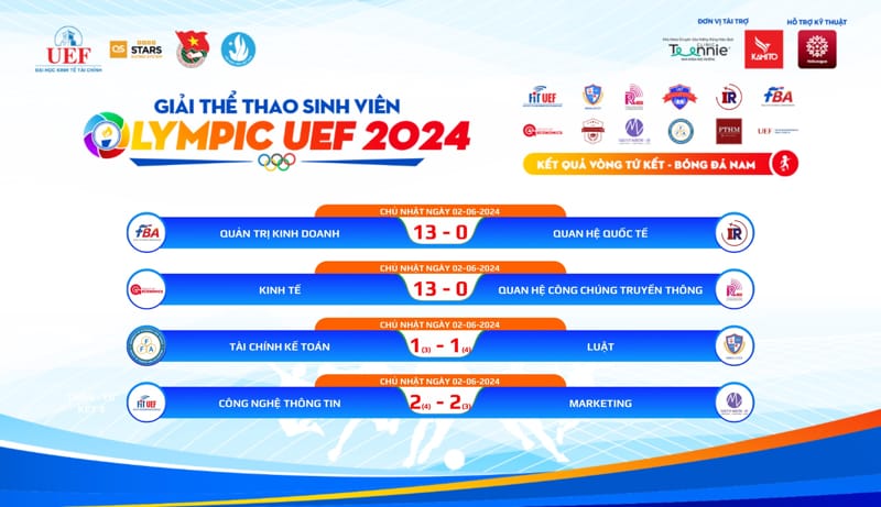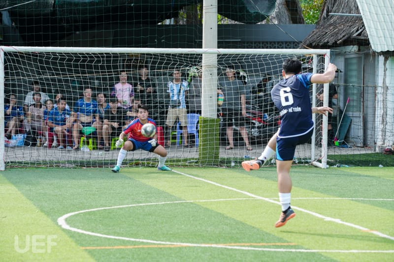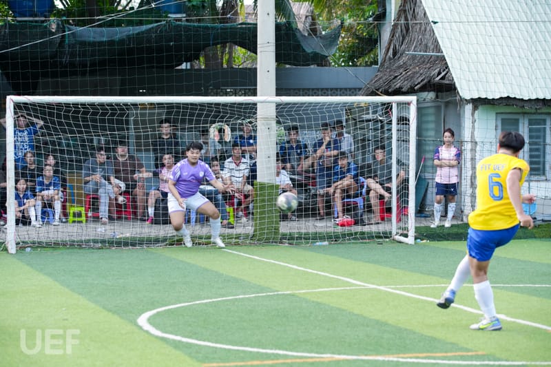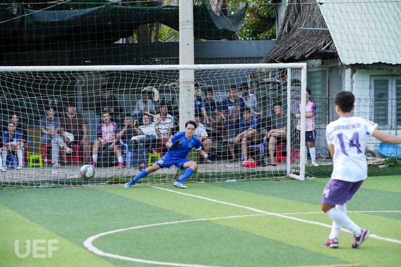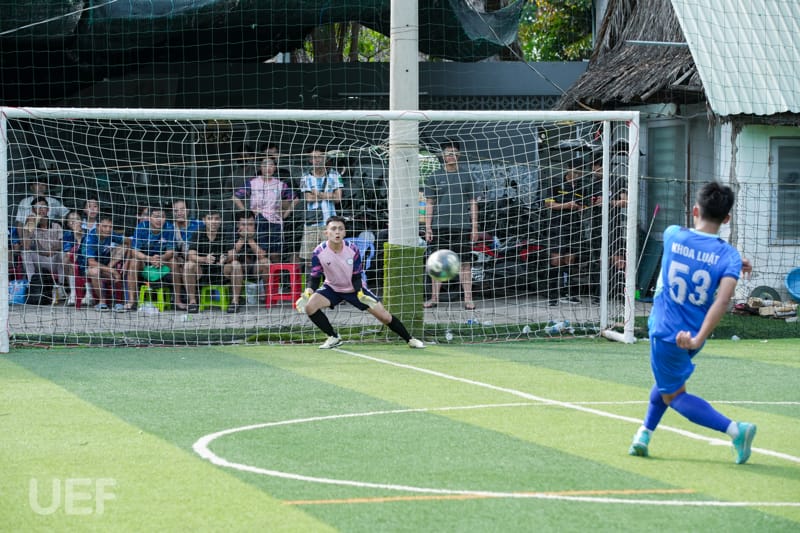 Có thể nói cục diện của 4 trận đấu được phân hóa rõ ràng. Nếu Khoa Quản trị kinh doanh và Khoa Kinh tế đều áp đảo đối thủ với “cơn mưa bàn thắng” 13-0, thì hai màn tranh tài còn lại phải xác định thắng thua trên chấm 11m.