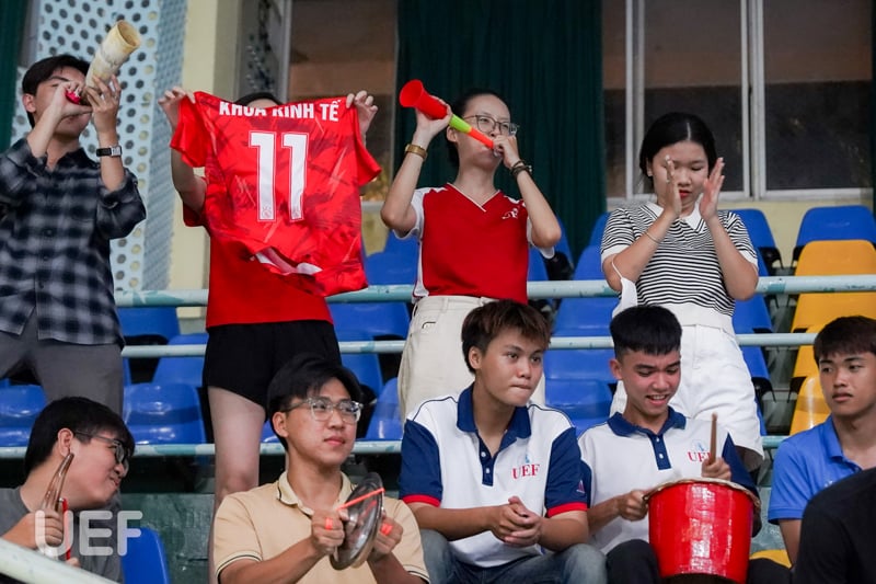 Trận tranh tài “nảy lửa” để giành huy chương Đồng giữa Khoa Marketing và Quản trị kinh doanh đã thu hút sự quan tâm cổ vũ của hàng trăm cổ động viên Nhà UEF, tạo nên bầu không khí vô cùng sôi động trên khán đài. Điều này giúp cả hai đội thi đấu cống hiến với liên tiếp những pha rượt đuổi tỉ số hấp dẫn. Trước lối chơi đầy chắc chắn và quyết đoán, các chàng trai “Nhà Tým” đã liên tục ghi điểm và không cho đối thủ cơ hội “trở mình”. Qua đó, trận tranh hạng Ba cũng xác định được chủ nhân của huy chương Đồng là Khoa Marketing với tỉ số 2 - 0.