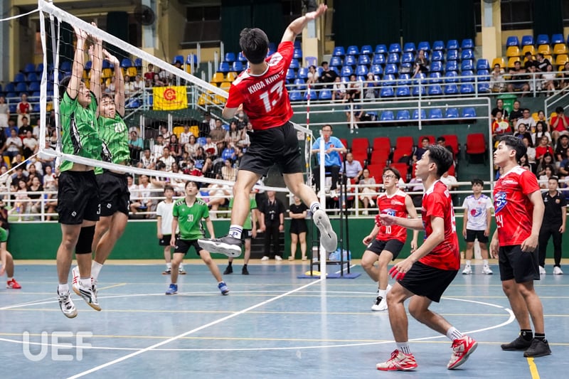 Khoa Kinh tế là đối thủ trong trận Chung kết Bóng chuyền nam của Khoa Tài chính - Kế toán. Là màn đối đầu có tính quyết định, hai đội đã mang đến thế trận giằng co, “ăn miếng trả miếng” trong thời gian thi đấu chính thức. Nhiều cơ hội dứt điểm được tạo ra, vận động viên hai bên không ngần ngại bung sức, đẩy mạnh tấn công bằng những pha dứt điểm uy lực. Một lần nữa, những trận đấu nghẹt thở với kết quả sát nút đã đẩy cảm xúc của khán giả lên cao trào, không gian của Nhà thi đấu Rạch Miễu rộn vang tiếng hò reo cổ vũ.