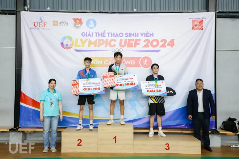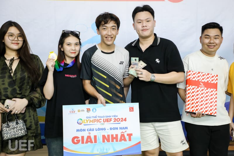 Vào ngày 14/4, vòng Tứ kết đến Chung kết bộ môn Cầu lông thuộc khuôn khổ Olympic UEF 2024 đã diễn ra với những màn tranh tài hấp dẫn. Thi đấu với tinh thần quyết tâm cùng kỹ thuật khéo léo, bạn Ngô Trần Đắc Lộc - sinh viên Khoa Tài chính - Kế toán đã xuất sắc giành huy chương Vàng nội dung đơn nam.